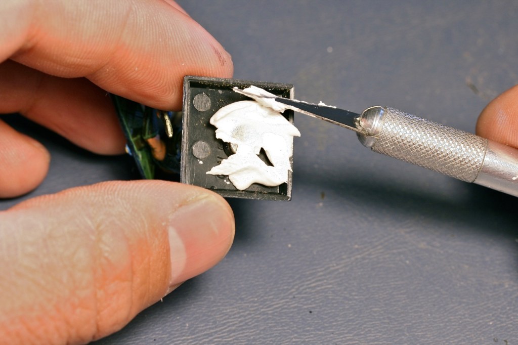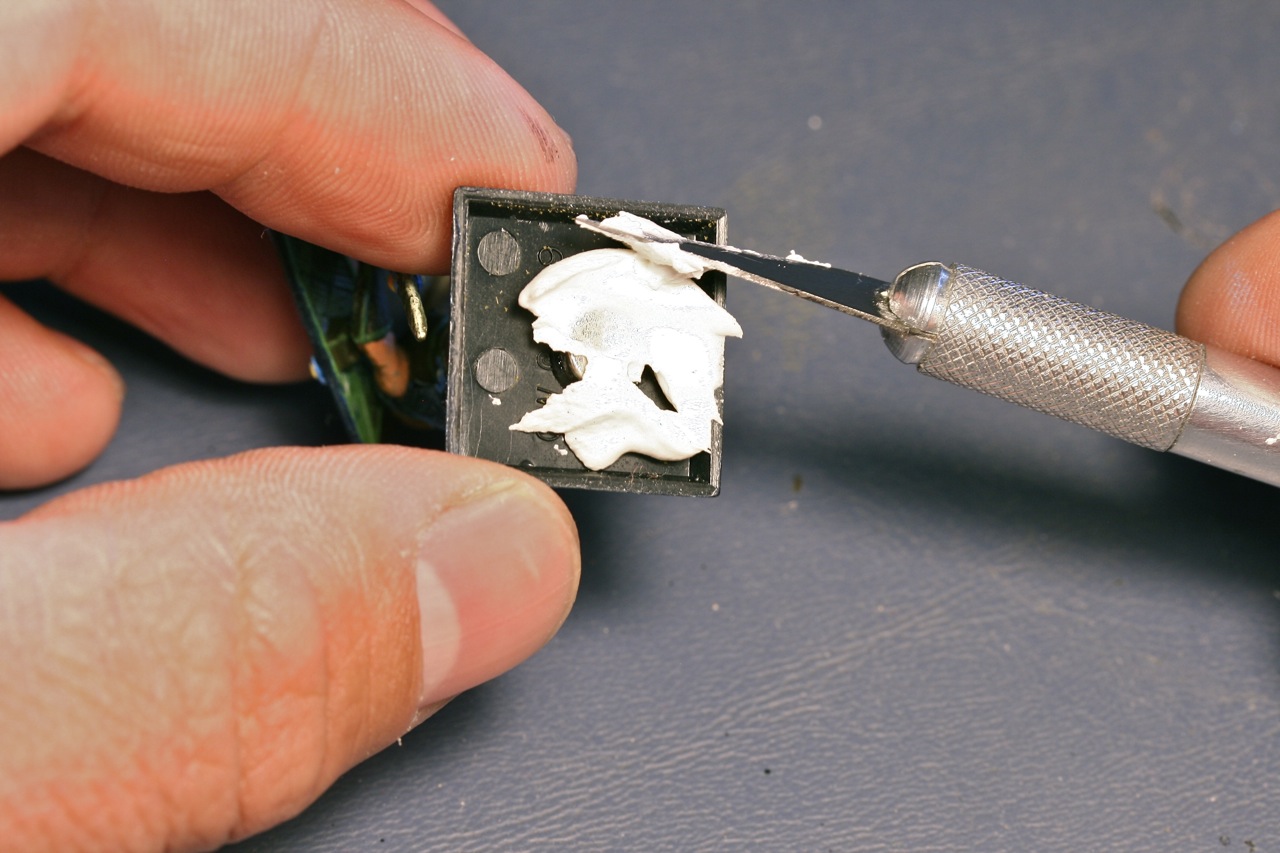 Fill in the void with paste. For this reason, I like to have my cavalry mount inserted into the base before I perform this step.