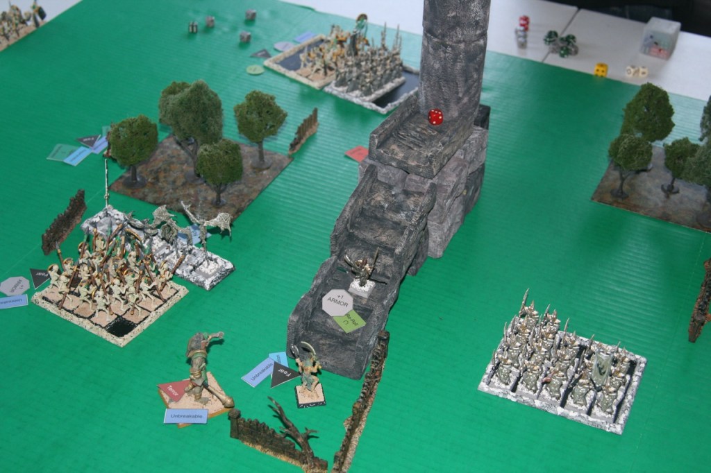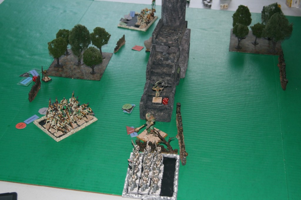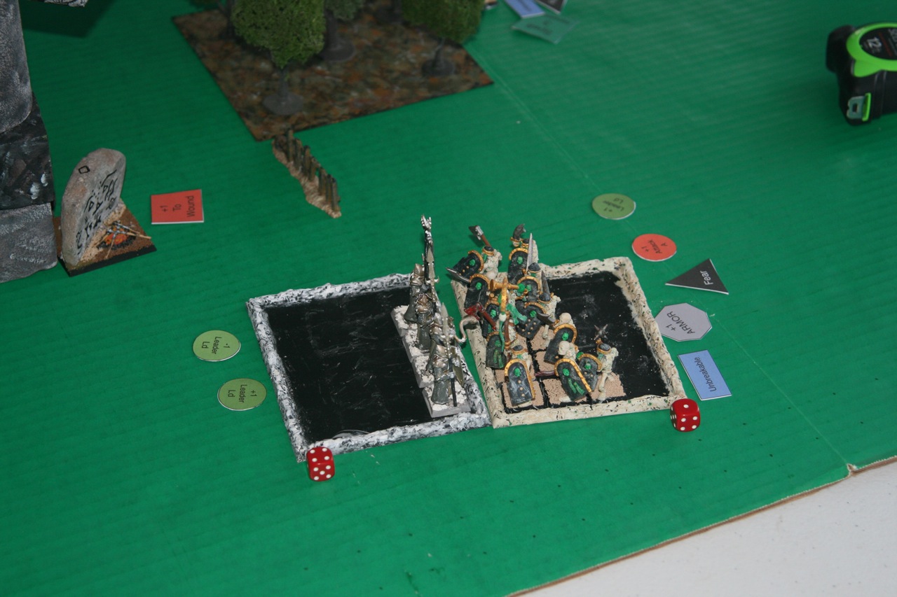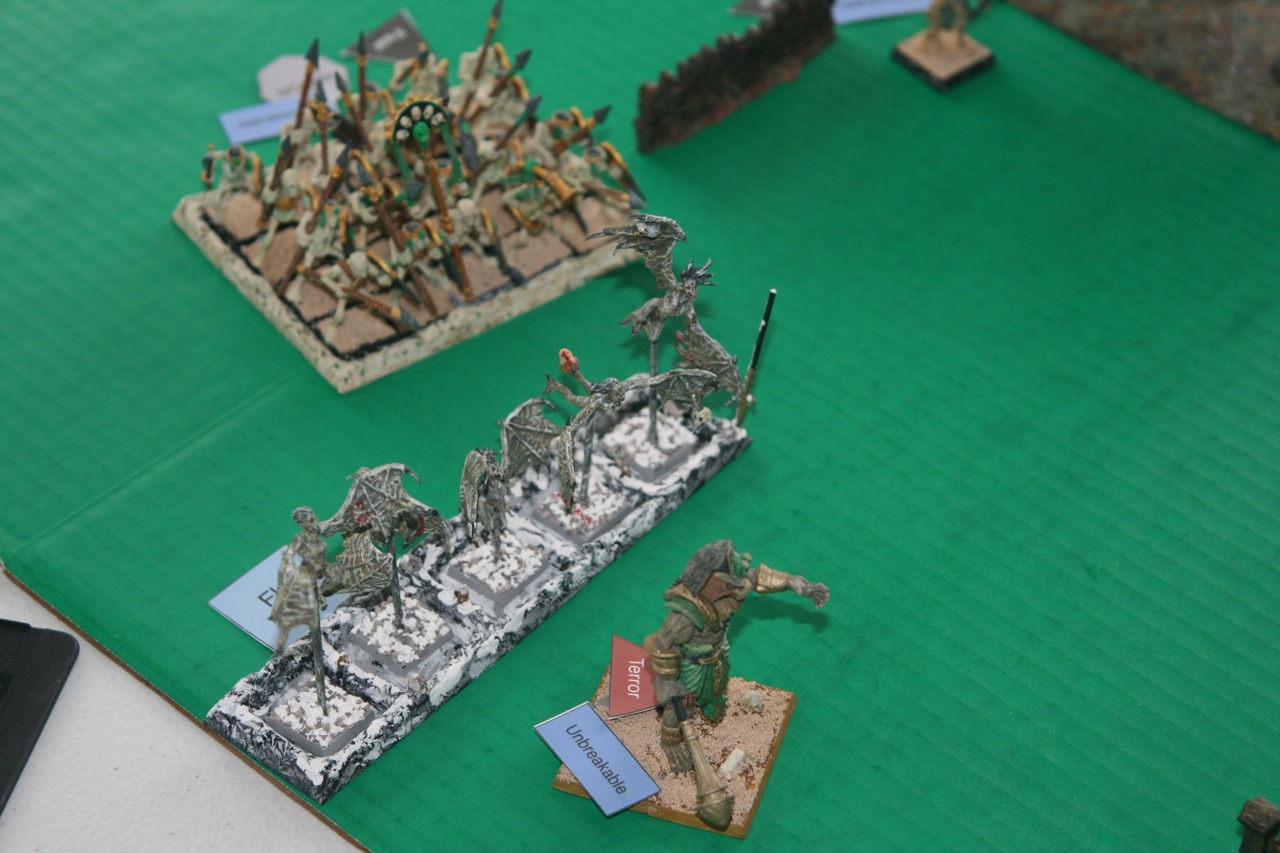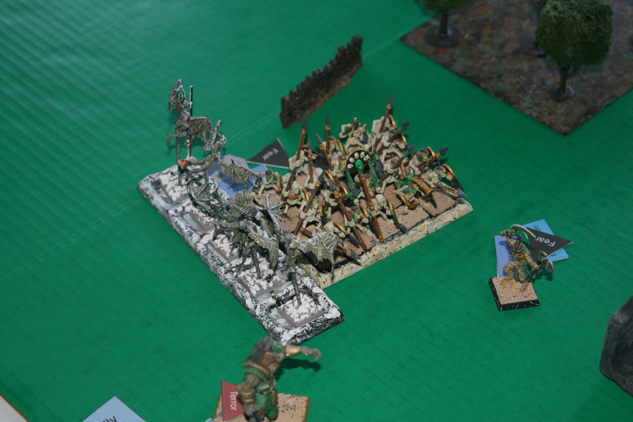 The Skeletons anticipate a charge from the Dreadspears and put themselves into a calculated position in regards to the Bane Stone.