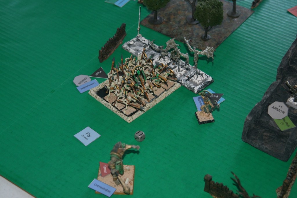 Next, combat has taken a toll for the worse for the Dreadspears. The skeletons were augmented again with extra attacks, and had another successful regeneration. The results were deadly for the elves. However, they proved their discipline again and continued fighting the skeletons.