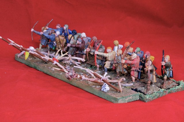 Skirmishers – Placed 1/2 ” apart. All ranks may shoot. Vanguard. Tighten up around center model for Close Combat. Reforms like Fast Cavalry. Spread back out on Remaining Moves. All models shoot, can shoot on the March, but -1 To Hit. -1 Penalty to shoot at Skirmishers. No rank bonus in Close Combat. Can’t be Steadfast. Can’t disrupt enemy. Character who join gain Skirmishers rule, except Mounted ones.