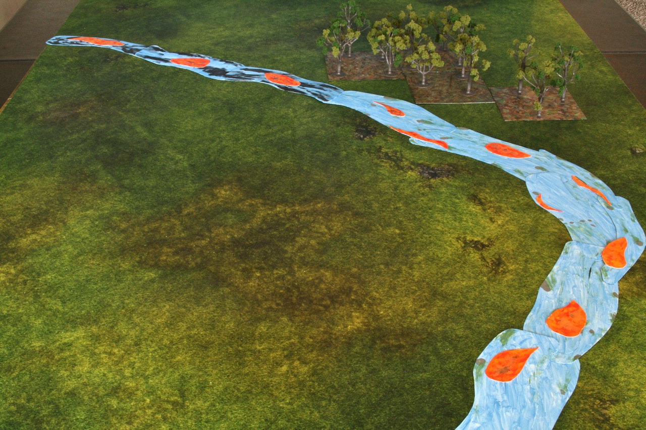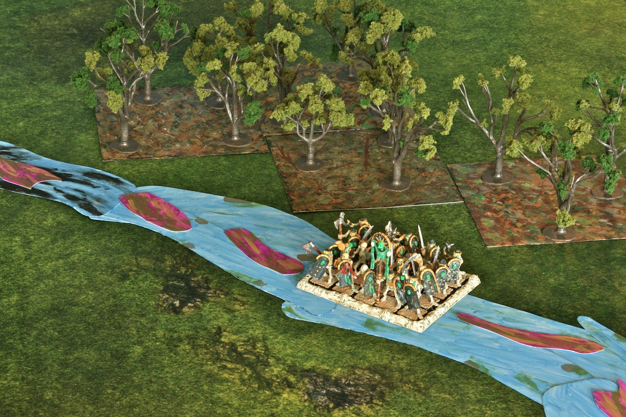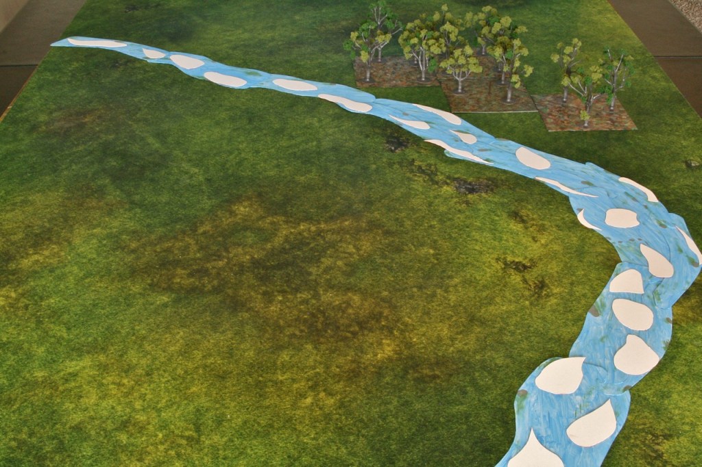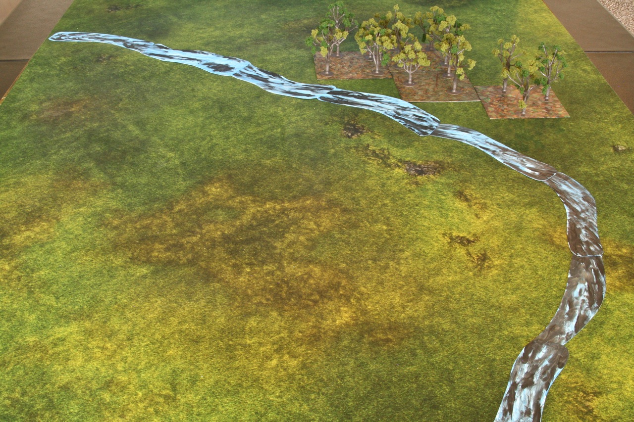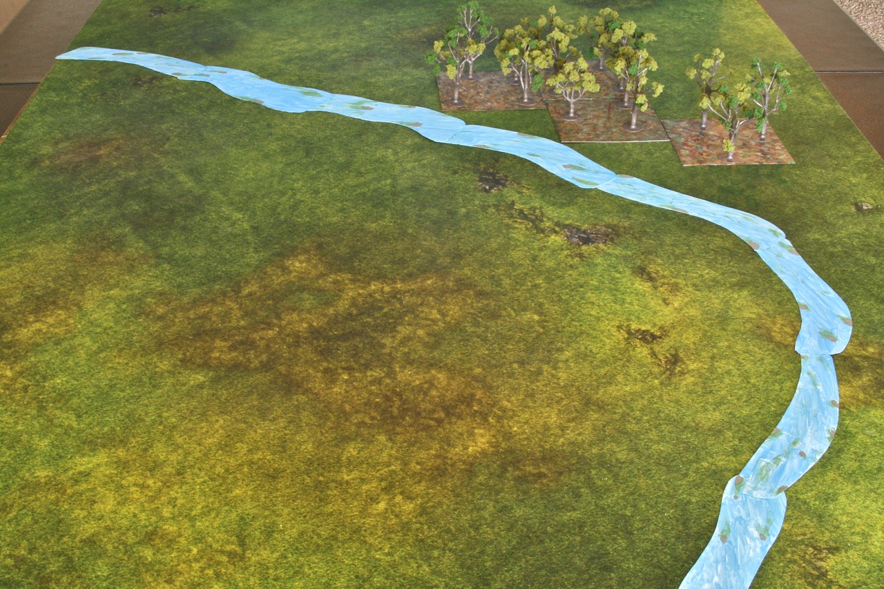 #5. The clean, crisp edge of the plasticard makes it easy to define the boundaries of the river. There is nothing complicated that makes gameplay hard to interpret. Despite the wavy bank lines of this river, the skeletons shown are clearly not within the river.