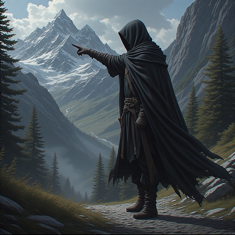 After a few more weeks of wandering through empty valleys, the Dwarfs happened upon a vagabond Dark Mage, who spoke little. He pointed them towards a high mountain pass. However, the motives for his directions were highly suspicious to the Dwarfs. But, they bravely decided to climb the pass, hoping it would lead them to their uncle.