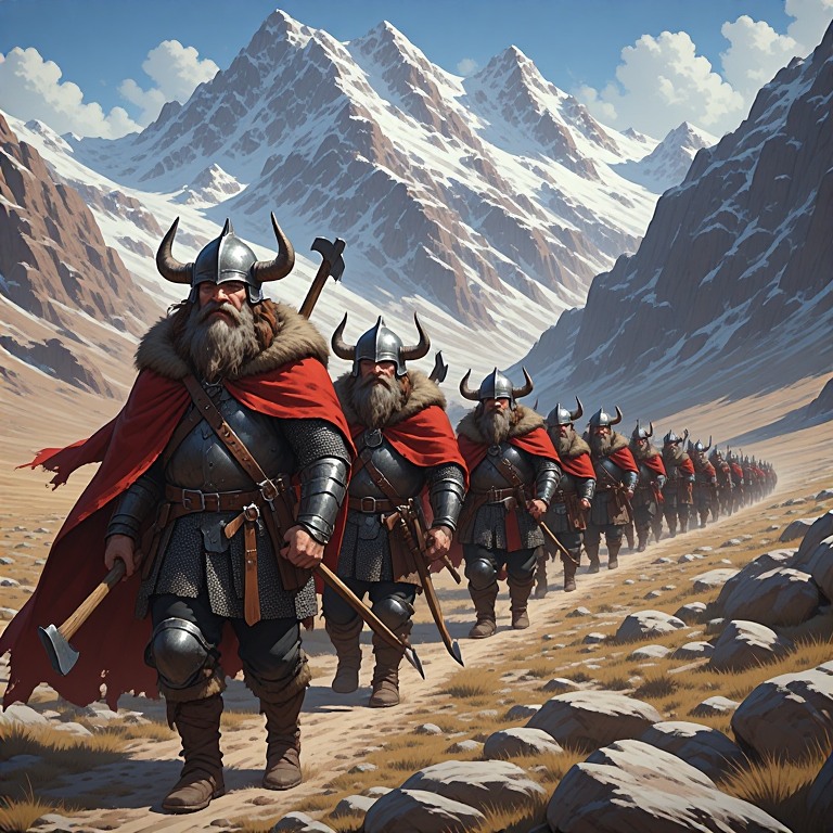 After a few more weeks of wandering through empty valleys, the Dwarfs happened upon a vagabond Dark Mage, who spoke little. He pointed them towards a high mountain pass. However, the motives for his directions were highly suspicious to the Dwarfs. But, they bravely decided to climb the pass, hoping it would lead them to their uncle.