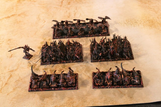 10 Chaos Furies. Claws. Fangs. Daemonic. Expendable. Fly. No Command. 140 points.
